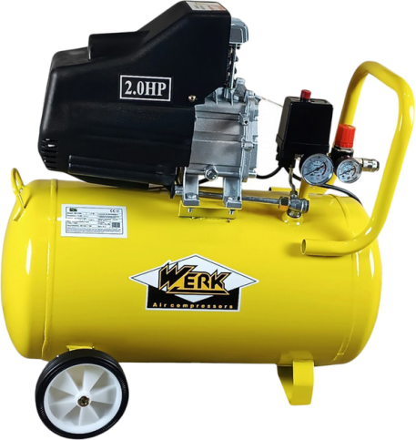 Поршневий компресор Werk BM-2Т50N з об'ємом ресивера (50 л) призначений для подавання стисненого повітря на різні типи пневмоінструменту. В основі техніки лежить потужний електричний двигун (1500 Вт), який розвиває швидкість до 2850 об/хв. За заявленого робочого тиску у 8 барів продуктивність пристрою становить 200 л/хв.