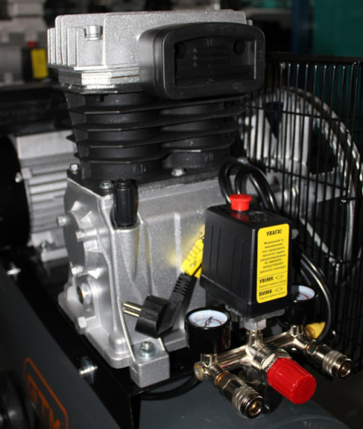 Надійні та високопродуктивні поршневі компресори з ремінною передачею GTM для вирішення завдань з використанням стисненого повітря. Компресор GTM KCH2070A-50L - масляний двоциліндровий агрегат з ремінним приводом, призначений для напівпрофесійного і професійного використання. GTM KCH2070A-50L використоаують для невеликої майстерні або СТО (підкачування коліс, пневмоінструмент), для будівельних робіт, до нього можна підключати практично будь-який пневматичний інструмент. Ця модель відрізняється високою надійністю і ресурсом за рахунок якісного складання і високоякісних матеріалів і деталей, використовуваних при її виготовленні. Повітря нагнітається в ресивер двома поршнями, які приводятся в рух електричним двигуном потужністю 2.2 кВт. Завдяки ремінній передачі забезпечується більш високий ресурс і тривалість роботи, чим у компресорів з прямою передачею, шківи і ремінь захищені спеціальною решіткою.