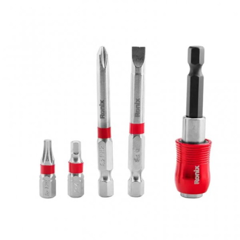 В наборі є магнітні 25-міліметрові насадки і торцеві голівки з нікелевим покриттям з типами шліців: плоскі, хрестові (Phillips і Pozi), Torx, Torx-Proof і шестигранні різних розмірів для широкого спектру застосувань. Також набір включає 6 типів торцевих голівок таких розмірів: 5 мм, 6 мм, 8 мм, 10 мм, 12 мм і 13 мм. Наконечники насадок і торцевих голівок виготовлені із загартованих високоміцних матеріалів, а розмір адаптера становить 25 мм.