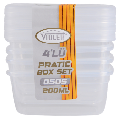 Набір контейнерів з кришкою VIOLET HOUSE 0505 PRATIC 4 шт. Об'єм: 0.2 л. Матеріал: поліпропілен. Форма: квадрат. Виробництво Туреччина. Особливості: багаторазовий