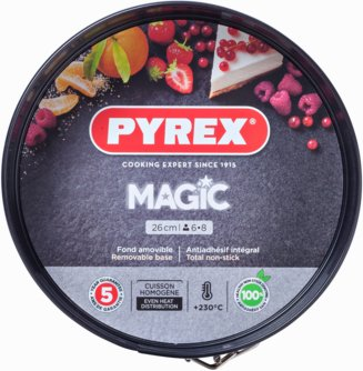 Форма роз'ємна PYREX MAGIC, 23 см (MG23BS6) Розмір: 23 см. Об'єм: 2.7 л. Форма кругла. Матеріал: вуглецева сталь.