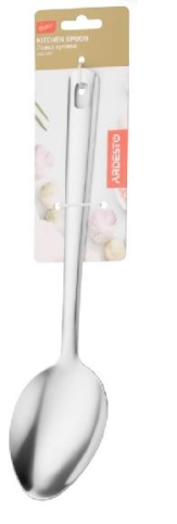 Велика ложка ARDESTO Gemini виготовлена із нержавіючої сталі. Довжина виробу – 30 см. Приладдя можна очищати у посудомийній машині.