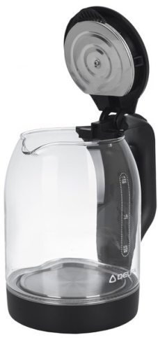 DK 2650 X електричний скляний чайник об'ємом 1.8 л. Для вашого комфорту та безпеки передбачені наступні функції: обертання бази на 360 градусів, автоматичне вимкнення при закипанні. Крізь прозорі стінки можна спостерігати, як закипає вода.