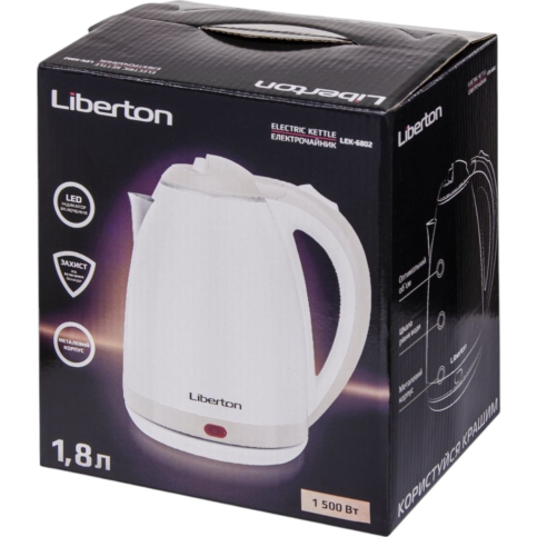 Електрочайник Liberton LEK-6802 – чудовий помічник на Вашій кухні. Завдяки великій потужності нагріву можна закип'ятити 1.8 лводи за короткий проміжок часу. Стане справжньою окрасою для Вашої затишної кухні. Його ергономічний і привабливий дизайн припаде до душі всім.