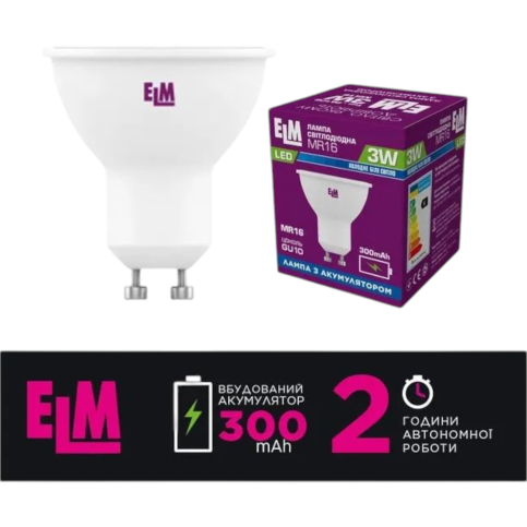 ELM MR16 3W PA10B GU10 4000 з акумулятором (18-0197)
