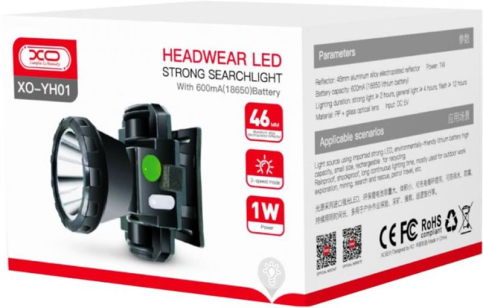 Світлодіодний налобний ліхтарик XO YH01 - ваш незамінний помічник під час планових/аварійних відключень світла та в темний час доби. Світлодіод, потужністю 1Вт, разом з 46-міліметровим рефлектором та оптичною скляною лінзою забезпечують яскравий світловий потік. В ліхтарик вбудований Li-ion акумулятор ємністю 600 мА, що забезпечує більше 2 год світіння, при увімкненні найяскравішого режиму. Зарядка проводиться за допомогою DC кабеля на 5В. Режими та тривалість роботи: • Яскраве світло – більше 2 год • Слабке світло – більше 4 год • Мерехтіння – більше 12 год Ліхтарик захищений від дощу та незначних зовнішніх механічних ушкоджень. Все завдяки корпусу виконаного з термостійкого поліпропілену. XO YH01 має широке застосування: похід в гори, під час науково-дослідницьких експедицій, при виконанні аварійно-рятувальних завдань, проведення ремонтних робіт, просто в побуті.