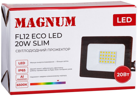 Світлодіодні прожектори ТМ Magnum серії FL12 ECO LED slim призначені для освітлення рекламних конструкцій, вивісок, під'їздів, гаражів, зовнішнього підсвічування будинків, споруд, спортивних майданчиків, автостоянок та різноманітних промислових об'єктів.