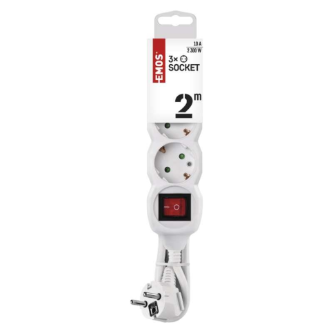 Emos (P1322) з вимикачем, 3 розетки, 2м, White