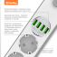 Удлинитель, с четырьмя сетевыми розетками 220В и 4 USB портами 5В. С его помощью можно подключать не только электроприборы, но и одновременно заряжать до 4 х мобильных устройств: смартфоны, планшеты, внешние батареи и многие другие устройства, которые поддерживают зарядку от USB порта. Мощная USB зарядка, с максимально гарантированной нагрузкой на все порты до 3.4 A, позволяет заряжать несколько устройств одновременно Интеллектуальная микросхема USB Auto ID - автоматически определяет тип подключенного USB устройства, что обеспечивает высокую совместимость умной зарядки с устройствами любых брендов Технология Super Charge – определяет наилучший ток заряда подключаемого устройства от 0.1 до 2.4A Три сетевые евро-розетки с заземлением и защитой от перенапряжения Провод 2.0 метра из чистой меди выдерживает нагрузку до 2500 Вт Высококачественная кнопка выключения с серебряными контактами выдерживает более 10 000 выключений без износа Общая кнопка выключения. Одним нажатием вы можете полностью отключить питание, пока фильтр не используется, просто и удобно Корпус из жаропрочного пластика, выдерживает температуру до 750 C° Контакты розеток изготовлены из бронзы, которая достаточно эластична и износоустойчивая Защитные шторки розеток от детей Резиновые ножки, позволяют прибору не скользить по поверхности