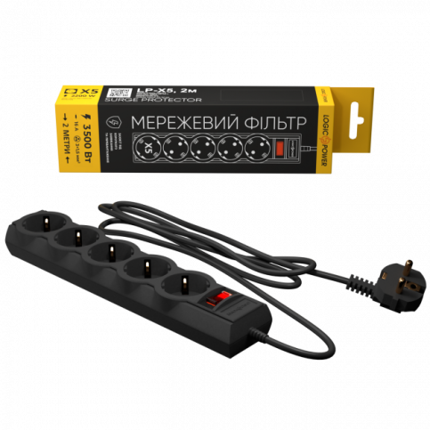 Мережевий фільтр LP-X5 PREMIUM, 2 м Black (3520Вт) забезпечує ефективний захист офісної техніки від різких стрибків напруги в мережі, струмових перешкод, коротких замикань і т.д. Корпус мережевого фільтру LP-X5 2 м Black (3520Вт) від ТМ LogicPower з лінійки PREMIUM виготовлений з високоякісного удароміцного пластика, який не містить карбонат кальцію, а також володіє високими жароміцними характеристиками (посилений захист від загорянь).