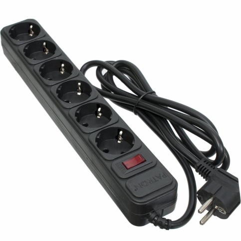 PATRON 1.8 m3*1.5mm2 (SP-1662) 6 розеток BLACK (EXT-PN-SP-1662)