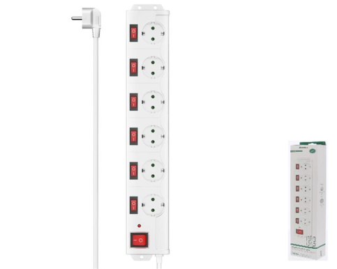 Мережевий фільтр на 6 розеток виробництва Hama. Оснащений загальним вимикачем та окремими перемикачами з підсвічуванням біля кожної розетки. Довжина кабелю складає 1.4 м. Ідеально підходить для комп’ютера та компонентів HiFi або офісу.