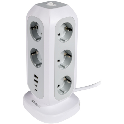 Компактна вертикальна конструкція розгалужувача живлення Verbatim європейського стандарту ідеально підходить для економії місця вдома, на кухні, на роботі або в школі, оскільки дає змогу оптимально організувати місце на робочому столі або підлозі.
