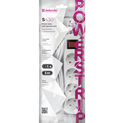 Подовжувач Defender S430 White - це практичний і надійний пристрій, призначений для розширення можливостей під'єднання електроприладів у вашому домі чи офісі. З чотирма розетками типу F (Schuko 2-pole), цей подовжувач дає змогу одночасно під'єднати кілька пристроїв, забезпечуючи їх стабільним живленням. Довжина шнура становить 3 метри, що забезпечує зручність використання і гнучкість у розміщенні пристроїв на значній відстані від джерела живлення.