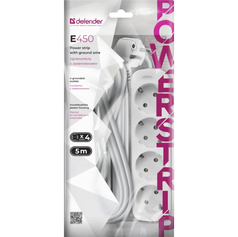 Електричний подовжувач Defender E450 призначений для підведення електрики в важкодоступні місця та/або підключення до однієї розетки декількох пристроїв одночасно.