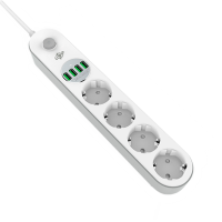 Мережевий фільтр подовжувач 4 розетки 4 USB 2м із захистом від перевантаження захищає від стрибків напруги та коливань. Подовжувач має 4 євро розетки для живлення ваших пристроїв, а також 4 порти USB для високошвидкісного швидкого заряджання.