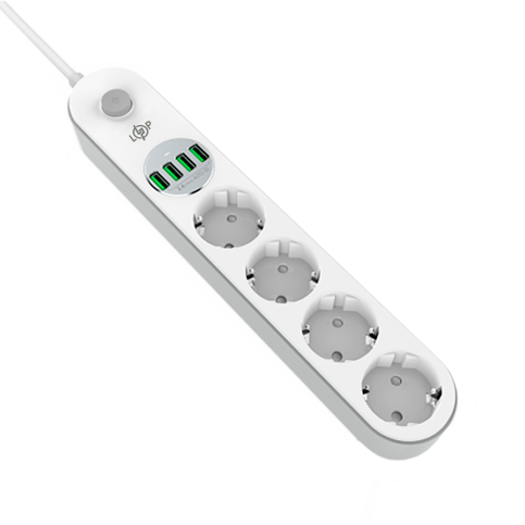 Мережевий фільтр-подовжувач LP F24U4 з чотирма мережевими розетками 220В та 4 USB портами 5В. З його допомогою можна підключати не тільки електроприлади, а й одночасно заряджати до 4 мобільних пристроїв: смартфони, планшети, зовнішні батареї та багато інших пристроїв, що підтримують зарядку від USB порту.