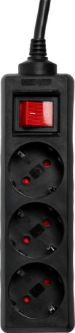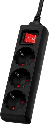 Пристрій із трьома універсальними розетками із заземленням та кабелем завдовжки 3 метри. Корпус виготовлений із міцного негорючого пластику.
