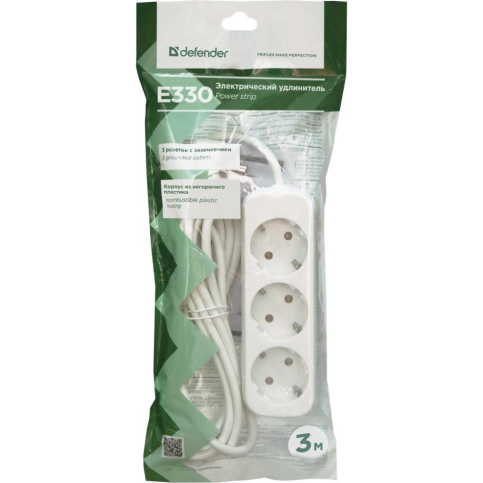 Мережевий фільтр на 3 розетки виробництва Defender. Довжина кабелю складає 3 м. За допомогою даного подовжувача, користувачу буде легко підключати побутову та цифрову техніку у приміщенні.