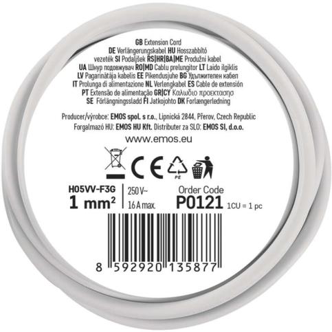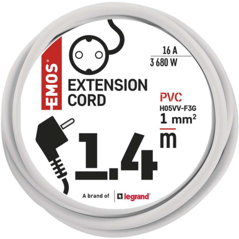 Ізоляція виготовлена з ПВХ, що не горить. Чудове рішення для під'єднання домашніх побутових приладів із навантаженням до 3680 Вт. Компактна переносна розетка із заземленням дає змогу швидко під'єднати прилад для використання на відстані. Розетка подовжувача має шторки для захисту від дітей.