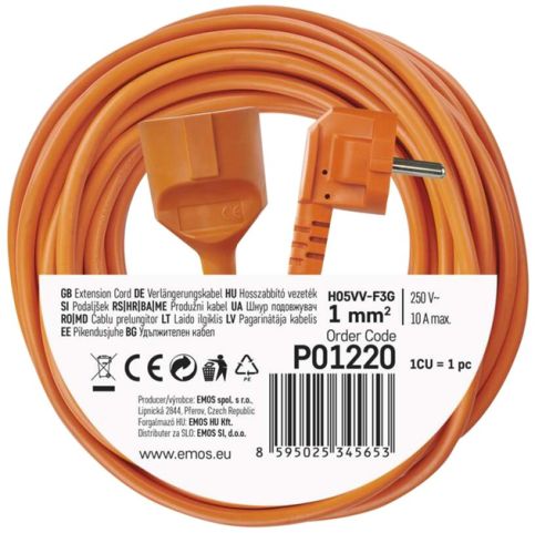 Подовжувач P01215R від чеського виробника Emos. Ізоляція виготовлена з негорючого ПВХ. Відмінне рішення для саду та городу. Має помаранчеве забарвлення для легкого виявлення дроту на землі.
