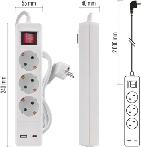 Мережевий подовжувач P1322CU від чеського виробника Emos. Відмінне та якісне рішення для підключення електроприладів, які знаходяться далеко від розетки. Корпус виготовлений з міцного пластику, що забезпечує довговічність та надійність. Також є заглушки для забезпечення захисту від дітей. Цей подовжувач дає змогу здійснювати заряджання мобільних пристроїв і ґаджетів, просто під’єднуючи кабель USB до конекторів подовжувача (1 x USB-A + 1 x USB-C). Ізоляція виготовлена з ПВХ, переріз кабелю 1.5 мм². Чудове рішення для під’єднання домашніх побутових приладів із навантаженням до 3680 Вт.
