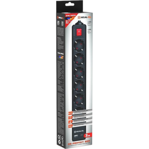 Мережевий фільтр-подовжувач REAL-EL RS-PROTECT 805 – це ідеальне рішення для тих, кому потрібно підключати до восьми пристроїв одночасно. Завдяки восьми розеткам із заземленням і захисними шторками, він забезпечує не лише зручність, а й високий рівень безпеки.