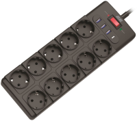 Мережевий фільтр 2E SP10M3USBBK стане надійним центром живлення для вашої техніки вдома чи в офісі. Завдяки десяти розеткам Type-F (Schuko) із заземленням можна одночасно під’єднати комп’ютери, монітори, периферію чи побутові прилади — усе, що потребує стабільного живлення. Додатковою перевагою є чотири вбудовані USB-порти — три стандартні USB-A та один USB-C, які забезпечують швидке заряджання смартфонів, планшетів чи аксесуарів без потреби у додаткових адаптерах. Кожен порт підтримує вихідну потужність до 18 Вт (USB-A) або 20 Вт (USB-C), тому навіть енергоємні пристрої заряджаються швидко й ефективно.
