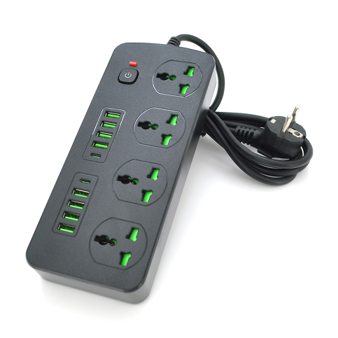 Т25, 4 розетки + 8 USB + 2 PD, 2 м, перетин 3х0, 75мм, 3000W, Black, Box
