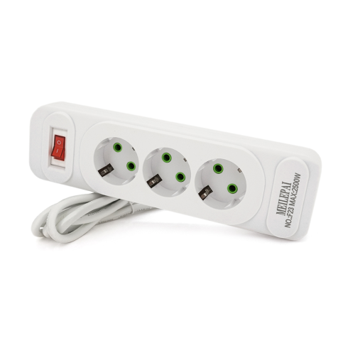 F23, 3 розетки EU, кнопка включення з індикатором, 2 м, 3х0,75мм, 2500W, White, Box