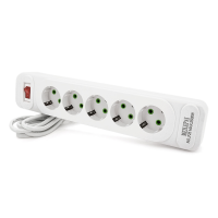 F25, 5 розеток EU, кнопка включення з індикатором, 2 м, 3х0,75 мм, 2500W, White