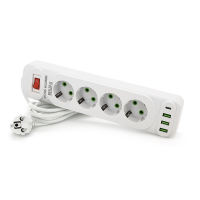 F24U, 4 розетки EU+3 USB+PD, кнопка включення з індикатором, 2 м, 3х0,75мм, 2500W, White, Box