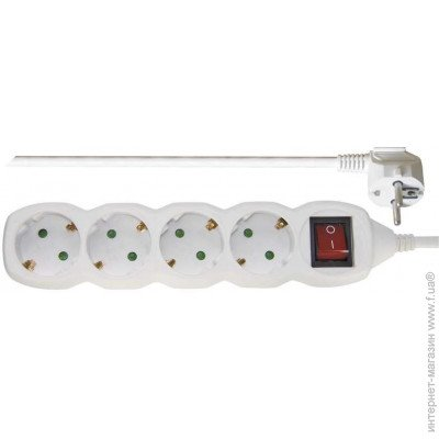 Тип - подовжувач, Сумарна потужність підключеного навантаження - ≤ 4000 Вт, Кількість розеток - 4 розетки, Довжина кабелю - 5 м, заземлення - є