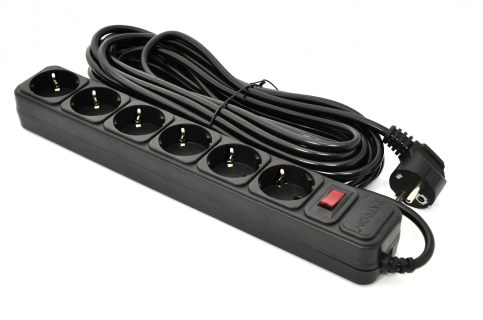 Сумарна потужність підключеного навантаження - ≤ Потужність 2200 Вт, Кількість розеток - 6 розеток EURO, 1 вимикач, Довжина кабелю - 10 м, чорний