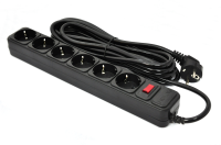 Кількість розеток - 6 EURO, 1 вимикач, Довжина кабелю - 5 м, чорний