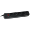 Сетевой фильтр питания Maxxter 3 м, 5 розеток (SPM5-G-10B) предназначен для предотвращения повреждения оборудования всплесками или импульсами напряжения. Фильтр защищает компьютерную и офисную технику от помех, перегрузок и короткого замыкания. Корпус сетевого фильтра питания выполнен из ударостойкого пластика и имеет сетевой кабель и вилку евростандарта, а также 5 универсальных розеток c заземлением (Euro/Rus). На фильтре установлен светодиодный выключатель и имеются отверстие для крепления к стене. Фильтр гарантирует моментальную реакцию на короткое замыкание и превышение максимально допустимой мощности. 5 универсальных розеток с заземлением (Euro / Rus) Ударопрочный пластиковый корпус Защита компьютерной и офисной техники от помех, перегрузок и от короткого замыкания Сетевой кабель и вилка евростандарта Выключатель со светодиодом Отверстие для крепления к стене Характеристики Напряжение: 220 В, 50 Гц Максимальная пиковая сила тока: 4500 А Максимальная импульсное напряжение: 4500 В Автоматический предохранитель: 10 А Максимальная энергия, поглощаемая (при продолжительности скачка напряжения 2 мкс): 125 Дж Длина: 3 м Цвет: черный