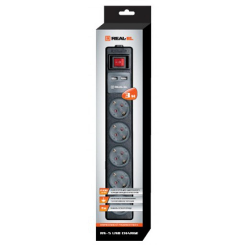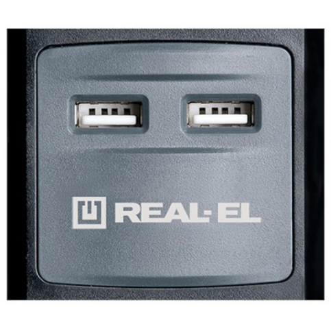 REAL-EL RS-8F (EL122300004) 3m Black 8 розеток, USB Charge