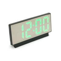 Електронний годинник VST-897 має дзеркальний дисплей, з датчиком температури та вологості, функцією будильника, живлення від кабелю USB та зеленого кольору.