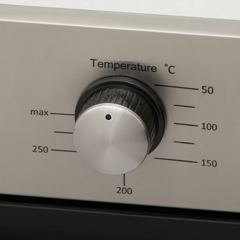Поворотні перемикачі залишаються найпопулярнішим вибором серед користувачів, адже гарантують легкість настроювань, безпеку та якість, яка перевірена роками. Два поворотні перемикачі дають змогу обрати необхідний нагрівальний елемент і вибрати температуру запікання.