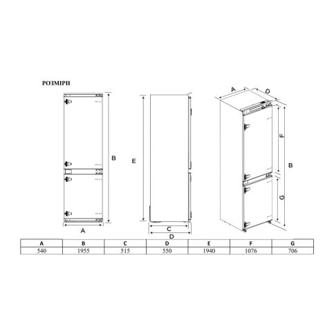 | Кількість відділень у морозильній камері (загальних/висувних) | 3/2 ящика + 1 полку |