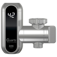 Модель Quartz Arni 3500 вирізняється своїми надзвичайно компактними габаритами 13 x 14.5 x 6.5 см та стильним сріблястим кольором. Попри малу вагу (0.7 кг), пристрій є повноцінним водонагрівачем конструкції "із краном". Для зручності контролю він оснащений яскравим дисплеєм, а управління температурою відбувається механічно, через відкритий регулятор на корпусі.