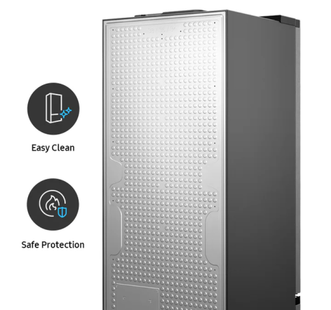 Очистити задню стінку вашого холодильника набагато простіше. Захисний короб захищає кабелі та легко очищається, тож можна не переживати за комплектуючі холодильника.