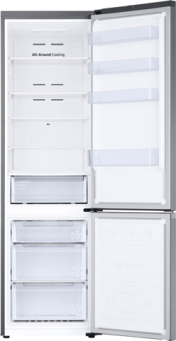 Гарантує, що вся ваша їжа належним чином охолоджена. Система всебічного охолодження рівномірно охолоджує кожне відділення від кута до кута. Вона постійно перевіряє температуру та забезпечує циркуляцію холодного повітря через оптимально розташовані вентиляційні отвори.
