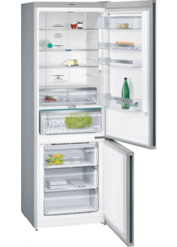 Холодильник Siemens KG49NLW30U ТЕХНІЧНА ІНФОРМАЦІЯ Загальний корисний об'єм: 395 л Кількість незалежних контурів охолодження - 2 Здатність заморожування за 24 год.: 15 кг Утримання низької температури у випадку відключення електропостачання впродовж 16 год. Навішування дверцят: правостороннє, з можливістю перенавішування Споживання електроенергії: 284 кВт/рік Передні ніжки регулюються за висотою/ролики позаду приладу Потужність підключення: 150 Вт Необхідний перемінний струм мережі 221 - 240 V Рівень шуму: 43 дБ Клімат-клас: SN-T РОЗМІРИ ПРИЛАДУ Розміри приладу (ВхШхГ): 200x70x65 см KG49NLW30U