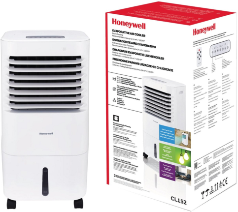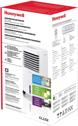 Ефективний охолоджувач повітря Honeywell CL152 (TOW016149) відмінно впорається зі спекою навіть у великих приміщеннях, адже має надпотужний двигун та велику швидкість потоку повітря. Його зручно переміщати між кімнатами з вбудованими ручками та коліщатками. Енергозбереження, сповіщення про відсутність води і дистанційне керування роблять використання охолоджувача безпечним і зручним.
