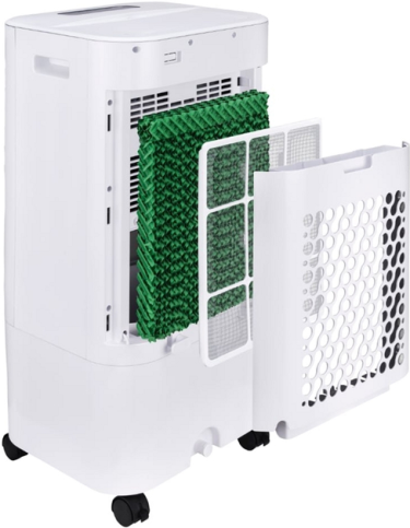 Індикатор рівня води розташований на передній частині пристрою. Охолоджувач оснащений датчиком нестачі води. У режимі охолодження, коли рівень води в резервуарі буде нижчим за мінімальний, ви почуєте звуковий сигнал, а індикатор буде постійно блимати. Пристрій автоматично призупинить роботу. Девайс постачається з пиловим фільтром з активованим вугіллям. Він не лише забезпечить здорову атмосферу, а й вбереже від зайвих витрат, адже не потрібно купувати нові фільтри — просто промийте його проточною водою.