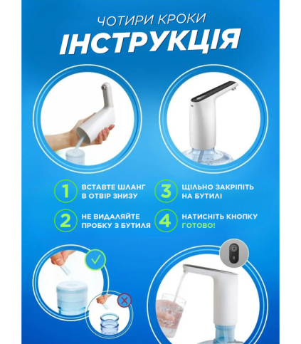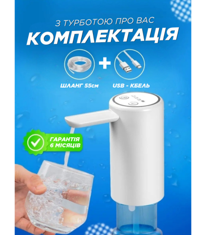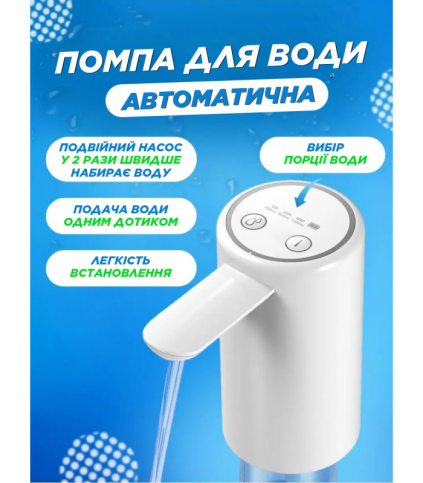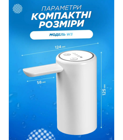 Помпа WP-03 має високу продуктивність та ефективність. Вона може перекачувати воду зі швидкістю 2,5л за хвилину з будь-яких ємностей. Дана модель має компактний розмір і легку вагу, що полегшує її переміщення і зберігання. Також модель обладнано додатковою кнопкою вибору кількості води. Користувач може обрати між 200, 800 та 1200 мл - переливши вибрану кількість рідини помпа зупиниться.