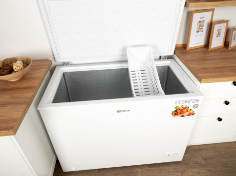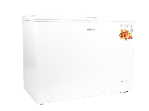GRIFON – український бренд побутової техніки високої якості, який завжди піклується про комфорт вашого життя. У виробництві ми ретельно контролюємо якість матеріалів для нашої продукції, щоб піклуватися про ваше здоров'я. Техніка GRIFON виготовляється на заводах з багаторічною історією. Весь процес виробництва суворо контролюється, а якість продукції бренду підтверджено сертифікатами Європи та України. ВИРОБНИЦТВО Виробництво ми обираємо за такими критеріями: - висока культура виробництва - використання передових технологій; - лідируючі позиції серед заводів-виробників; - контроль якості на кожному етапі від сировини до готової продукції; - надійність та лояльність до партнерів; - гарантійний супровід. Велика морозильна скриня Grifon GRML-300M. Оптимальне співвідношення доступної ціни та високого рівня якості — це морозильна скриня GRML-300M від Grifon. Створена з перевірених компонентів для довготривалої служби, вона готова працювати без перебоїв та технічного обслуговування мінімум 10 років. З такою технікою ви маєте змогу заморожувати на тривалий час різні типи продуктів, не хвилюючись про їх збереження місяцями. Зовнішні характеристики. Білий колір побутової техніки — практичне рішення з точки зору дизайну та чистоти. Ви можете встановити скриню GRML-300M на дачі, в магазині чи великій квартирі. Завдяки оптимальним габаритам виробу 1115х645х850 мм, його можна встановити майже будь-де. Кришка герметично закривається, а просте відкриття забезпечує прихована ергономічна ручка. На фасаді розміщений невеликий отвір для ручної розморозки, а також механічна ручка термостата з індикаторами процесу заморозки. Можливості розміщення продуктів. Глибока та містка морозильна скриня розрахована на об’єм у 290 літрів, де без проблем поміститься зимовий запас продуктів: -овочі; -фрукти; -м’ясо; -риба; -напівфабрикати; -фарш. Комплектація GRML-300M включає в себе дві залізні навісні корзини для дрібних заморозок — морозива, льоду та іншого. Технічні показники. Скриня GRML-300M має новітні компоненти системи охолодження — компресор SZ80E1H-SCL та холодоагент R600a. Завдяки електронним терморегуляторам, високій теплоізоляції та А+-класу енергоефективності споживання енергії пристрою складає усього 286 кВт на рік. Широкий набір кліматичних класів — N/SN/ST/T, свідчать про те, що морозильна скриня може працювати без перебоїв, коли температура зовні в рамках від +10 до +43 °С. Тобто її можна поставити навіть на літній веранді.