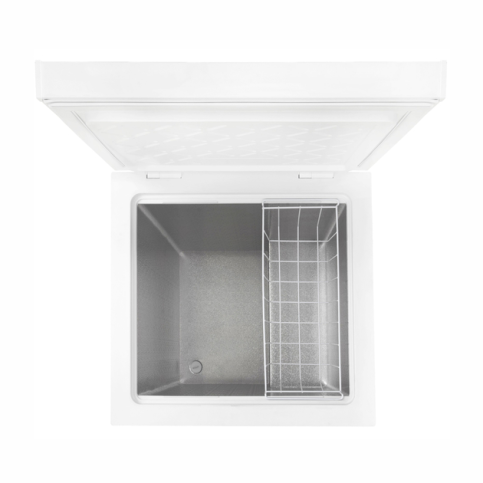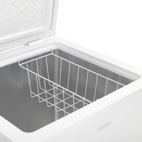 У металевому кошику зручно зберігати невеликі упаковки, щоб не марнувати час на пошуки потрібних продуктів. Його можна переміщувати або повністю зняти, щоб максимально використовувати внутрішній об’єм скрині – зберігати готові страви, заготовлювати ягоди і зелень, заморожувати великі шматки м’яса, птиці та риби.
