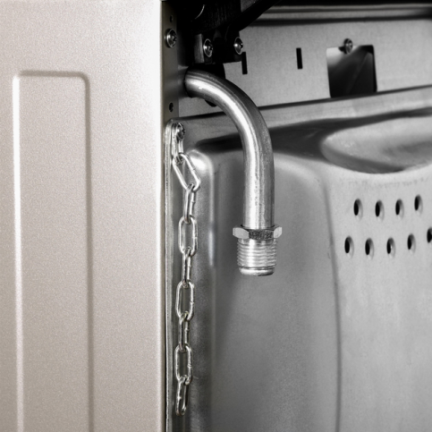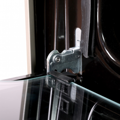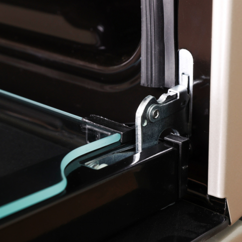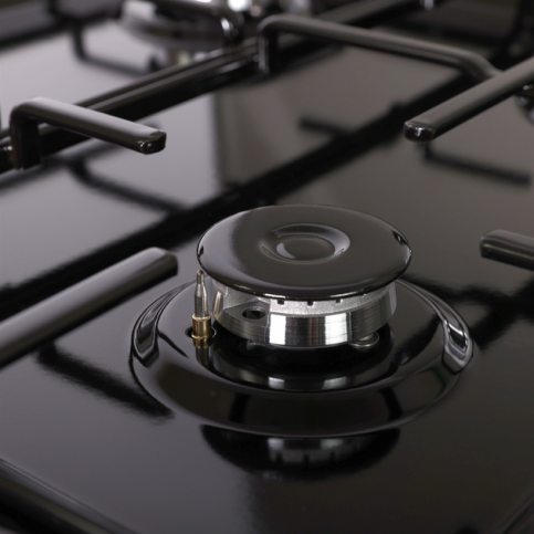 Варильна поверхня обладнана сталевими решітками та металевою кришкою, яка захищає її при невикористанні. Електрозапалювання конфорок не передбачене, але передбачена система газ-контролю як для конфорок, так і для духовки, що гарантує безпеку під час користування. Духова шафа також працює на газу, має об’єм 58 літрів, одне скло дверцят, рельєфні напрямні з чотирма рівнями та внутрішнє покриття з емалі легкого очищення. Основний режим роботи — нижній нагрів, гриль у даній моделі відсутній.
